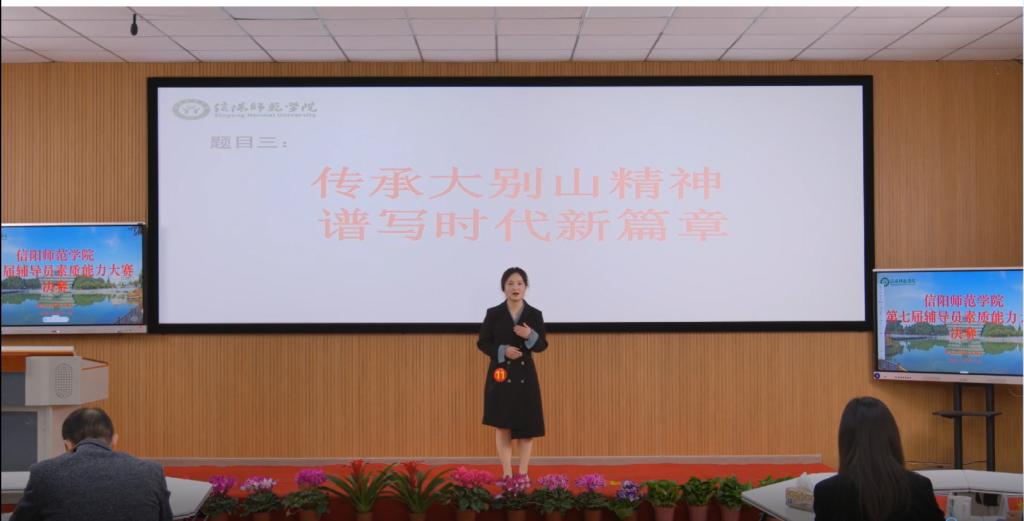 本次大赛由信阳师范学院学生工作处(部)主办,全校近百名辅导员参加。经过初赛环节的基础理论知识测试、案例研讨和谈心谈话三个项目的激烈角逐,12名辅导员脱颖而出,晋级决赛。决赛分为案例分析和理论宣讲两个项目。在案例分析阶段,选手们以AB角问辩的形式围绕案例体现的问题本质、解决路径、实施方法及相关启示等进行了细致阐述。在理论宣讲环节,选手们以扎实的理论基础、饱满的精神状态和富有感染力的语言围绕主题进行宣讲。在决赛中,12名选手案例分析合理到位,处理问题正确得当,理论阐释精准精辟,语言表达清晰流畅,展现了 4k影视 辅导员队伍良好的精神风貌和过硬的综合素质。