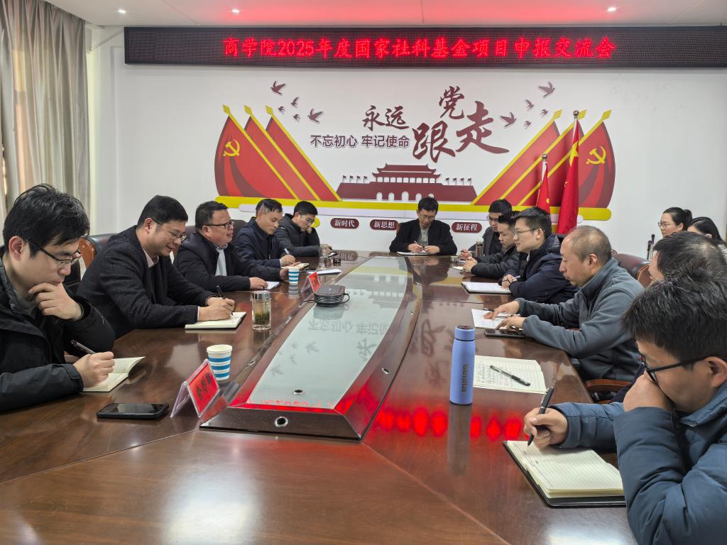 12月6日下午, 4k影视 2025年度国家社会科学基金项目申报交流会在经管楼519会议室召开。 4k影视 社科处吕东亮处长、俞彤晖副处长一行莅临指导, 4k影视 院长彭荣胜、副院长杜辉以及国家社会科学基金项目申报教师参加会议。会议由副院长杜辉主持。